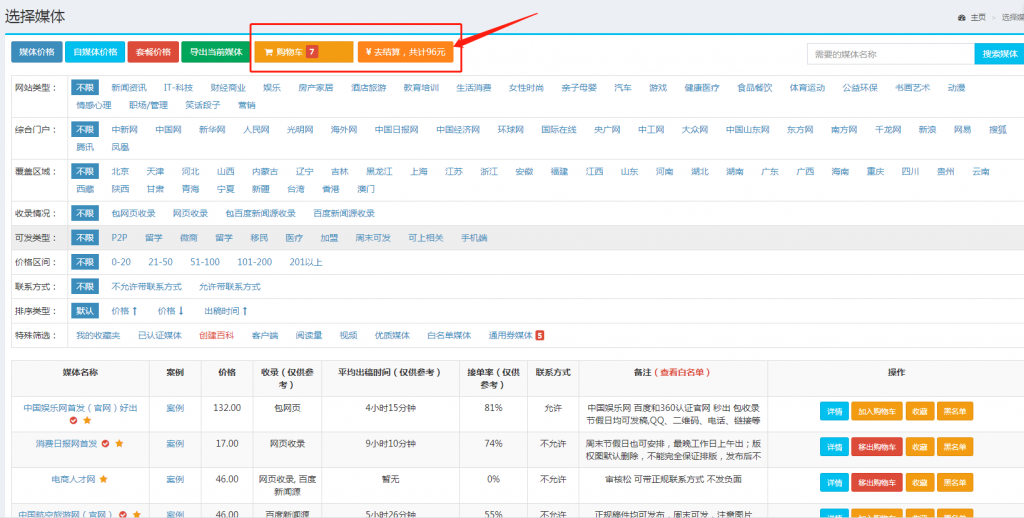 第二步【选择媒体】【加入购物车】